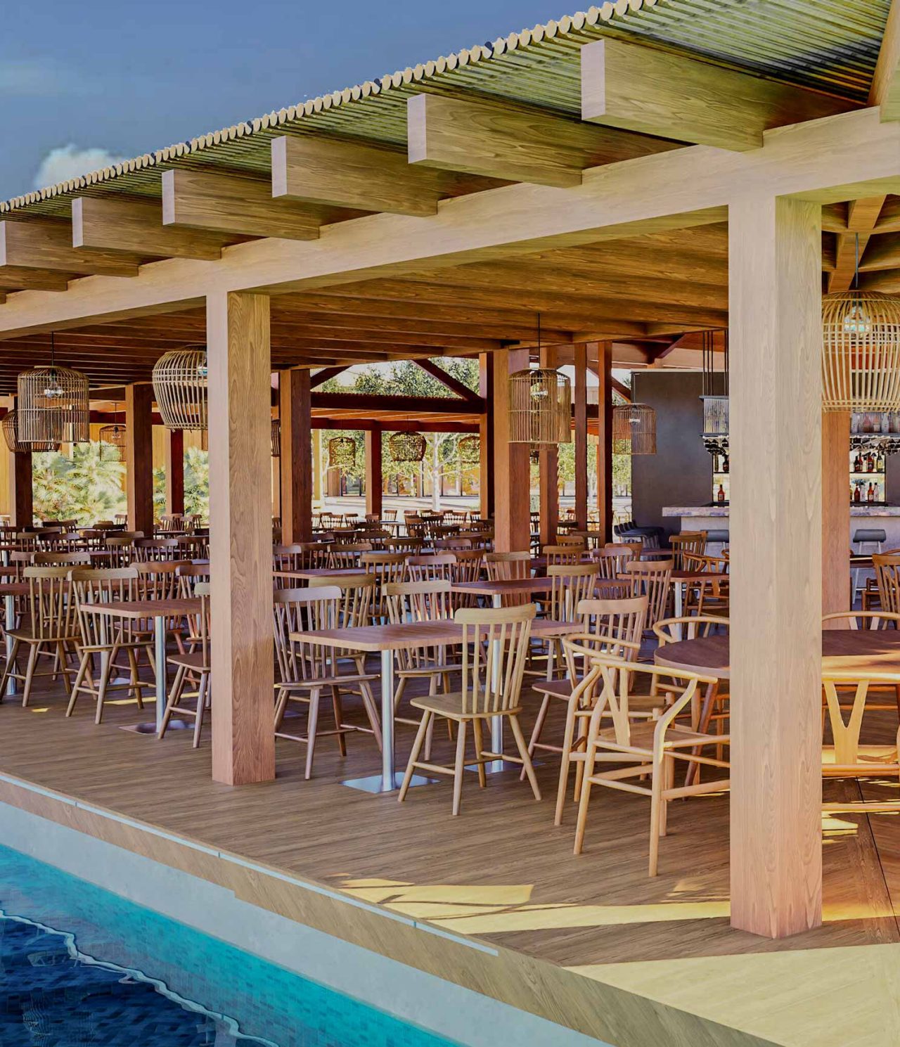Las villas de madera están diseñadas para integrarse armoniosamente con el paisaje, recurriendo a soluciones constructivas y energéticas que minimizan el impacto ambiental. La gestión eficiente de los recursos, el uso de materiales naturales y la implementación de prácticas ecológicas en todas las áreas del complejo reflejan el compromiso de ofrecer una experiencia de vacaciones responsable, en la que el confort y el respeto por el medio ambiente van de la mano.