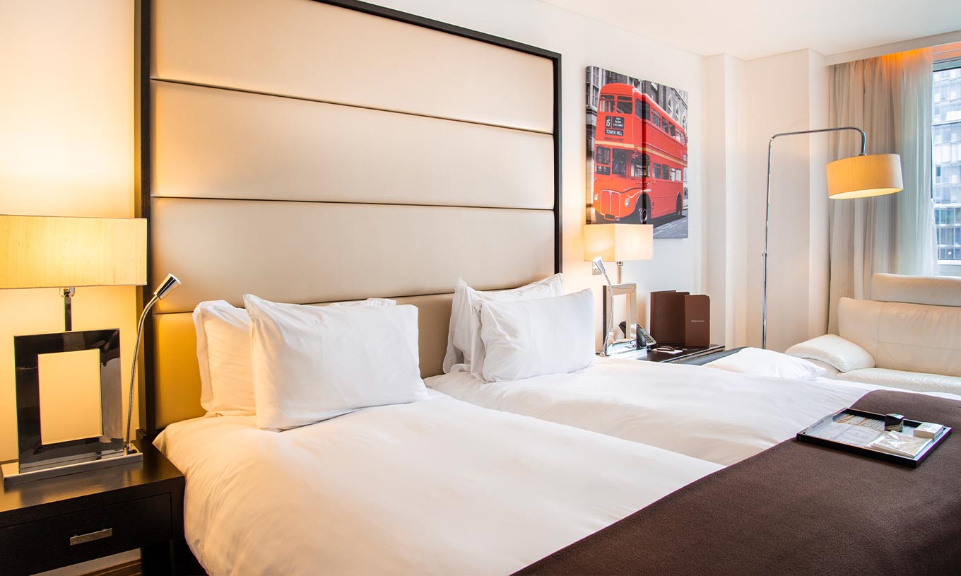 The hotel offers 217 spacious, modern rooms, including one- and two-bedroom suites, all equipped with both a bathtub and a separate shower. The comfort of its king-size and twin deluxe beds has become a hallmark, earning praise from leisure travellers and from national and international football teams who have made Pestana their London home.